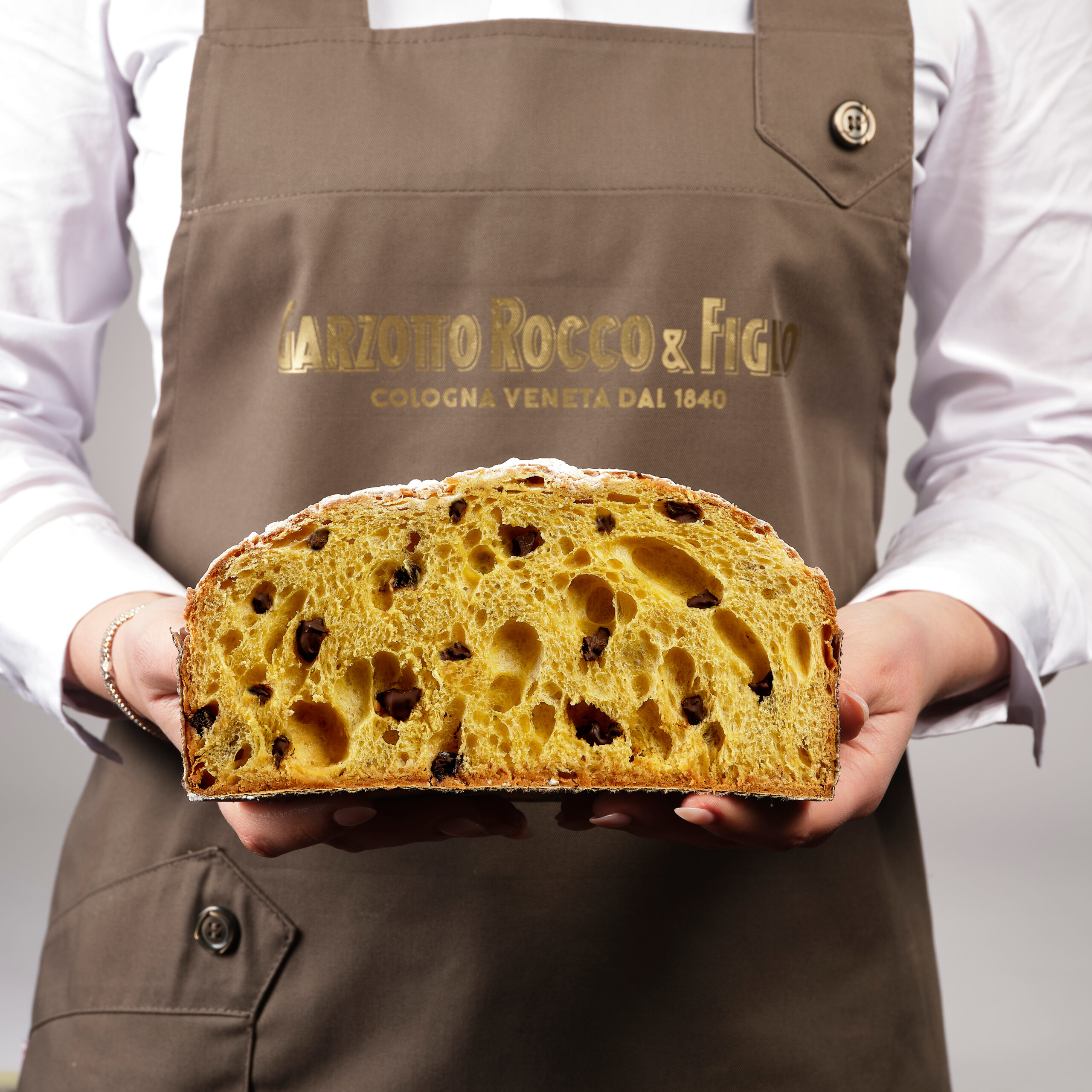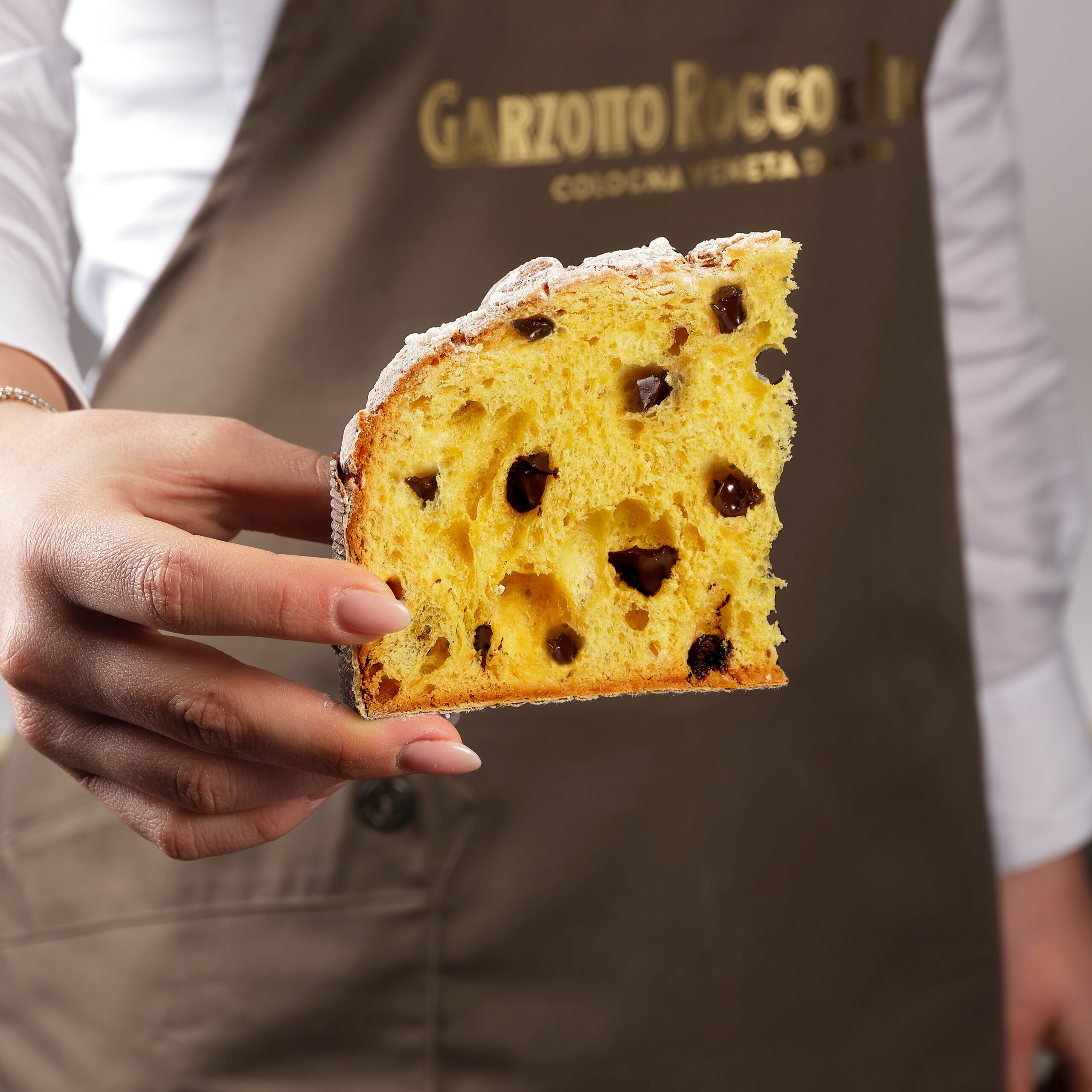 Il soffice impasto, ottenuto grazie a una lenta lievitazione naturale, viene arricchito con scaglie di mandorlato e raffinate gocce di cioccolato, creando un perfetto equilibrio tra la croccantezza delle mandorle, la dolcezza del miele e l’intensità del cioccolato. A completare il tutto, una glassa finissima alla mandorla, impreziosita da pregiate mandorle pugliesi tostate che aggiungono una nota croccante e aromatica.